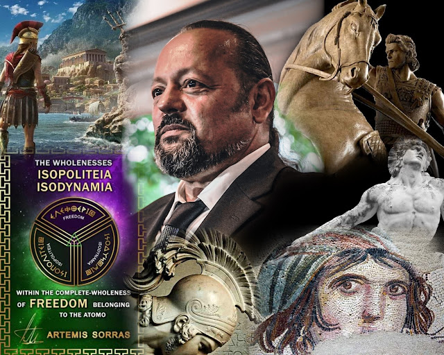 Dear reader, in front of you, you have a Sacred Ellanio Text of endless and creative knowledge. This is a Sacred Text, whose creator Artemis Sorras wrote during his imprisonment by the apostate regime that violated every sense of Justice. However, the writer of this Text magnificently invites every human to become a true Politis (Citizen) and create within his rightful Politeia (State), with the Democratic Principle of ISOPOLITEIA, the Attribute of ISODYNAMIA and the Value of VIRTUE. Through a historical account of the Battle of Thermopylae, he analyses the Attribute of ISODYNAMIA which was utilised by the 300 Spartans and Leonidas – and later on by Alexander the Great – with Virtue and Valour, as true Polites (Citizens) that they were. In the following pages of this Text, Artemis Sorras analyses the true meaning of FREEDOM through diagrams and geometry, revealing its great complete-wholeness where every Politis can create freely with Virtue, Harmony, Justice and ISODYNAMIA.